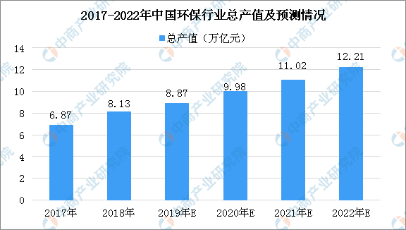 近年來,我國高度重視環境污染問題,投了大量的人力和資金成本來進行大氣污染治理,環保行業一度上升為熱門行業。據預測:到2020年,中國環保行業總產值將近10萬億元。