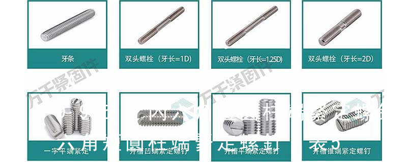 3.內六角圓柱端緊定螺釘 GB79-85(ISO4028-1977) 材料:鋼 機械性能:33H 45H ;不銹鋼 機械性能:A2-70 4.內六角凹端緊定螺釘 GB80-85(ISO4029-1977) 材料:鋼 機械性能:33H 45H ;不銹鋼 機械性能:A2- 止付螺絲就是一端為內六角,另一端有好幾種標準。螺絲,也有人叫它“螺釘”[Screw] (螺絲釘)、“螺桿”(螺絲桿)。其實螺絲是通稱,而螺絲釘、螺絲桿都是互有區別的。螺絲釘一般叫木螺絲;是前端有尖頭的那種,螺