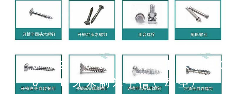 B-1: Sheet Metal Tapping Screw. (鐵板牙自攻螺絲)B-2: Plastic Tapping Screw. ( 塑料用, 自攻螺絲)C: Wooden Screw : 木工螺絲 D: Drywall Screw : 水泥墻螺絲 三. 常見螺絲材質:a.Low Carbon Steel :低碳鋼 ④頭型 :用字母來表示頭型的種類,可參看前文常用螺釘頭型分類。 ⑤牙型/尾型 : 用字母來表示牙型/尾型的種類,可參看前文“常用螺釘牙型/尾型分類”。 ⑥槽型 :參看前文“我司常用螺釘槽型分類”,十字槽或無槽(如沖六角頭螺
